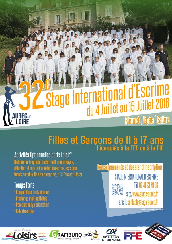 Aura lieu du 4 au 15 juillet 2016. Pour tout renseignement, se reporter au site internet du stage : www.stage-aurec.fr